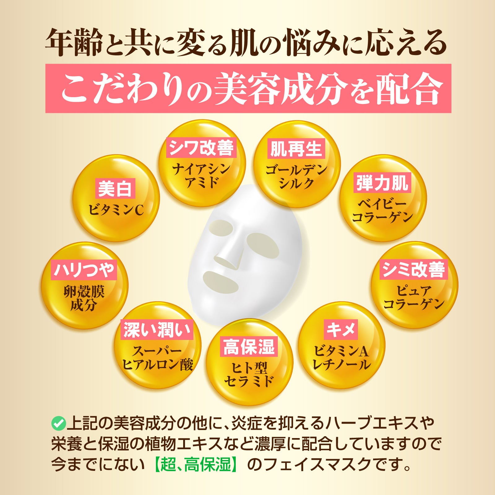 他の画像を見る ロアコスモ シートマスク フェイスマスク シートパック フェイスパック ナイアシンアミド ビタミンC 卵殻膜 ベイビーコラーゲン ピアコラーゲン スーパーヒアルロン酸 ヒト型セラミド レチノール ゴールデンシルク 【SALE 20%OFF】超高保湿 シートマスク『ゴールデンシルク オーガニック フェイスマスク 7枚入り』 通常価格(税込) : ¥ 1,980 販売価格(税込) : ¥ 1,584 税込 カートに入れる お気に入りに保存
