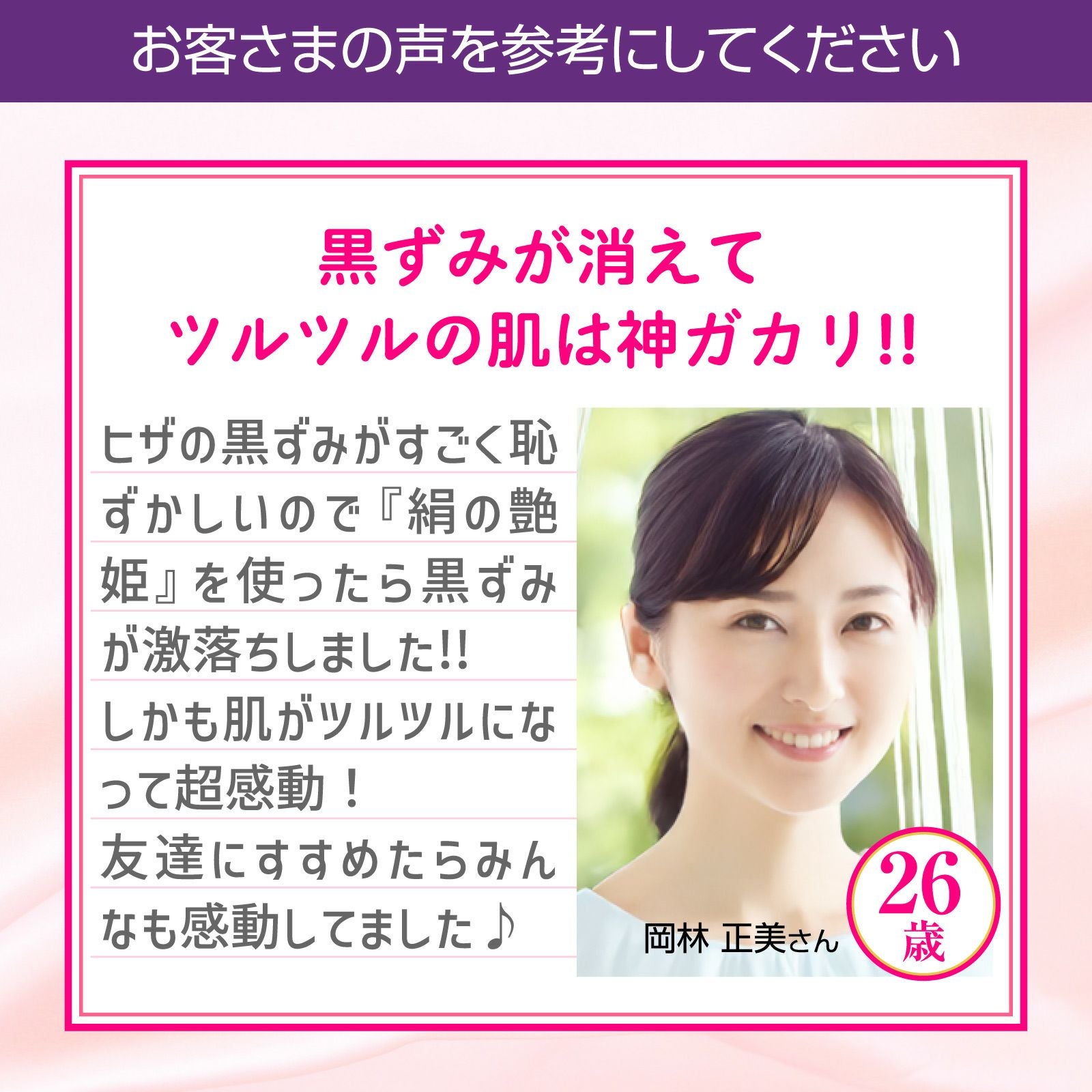 黒ずみもザラザラも解消してツルツルの肌になります。