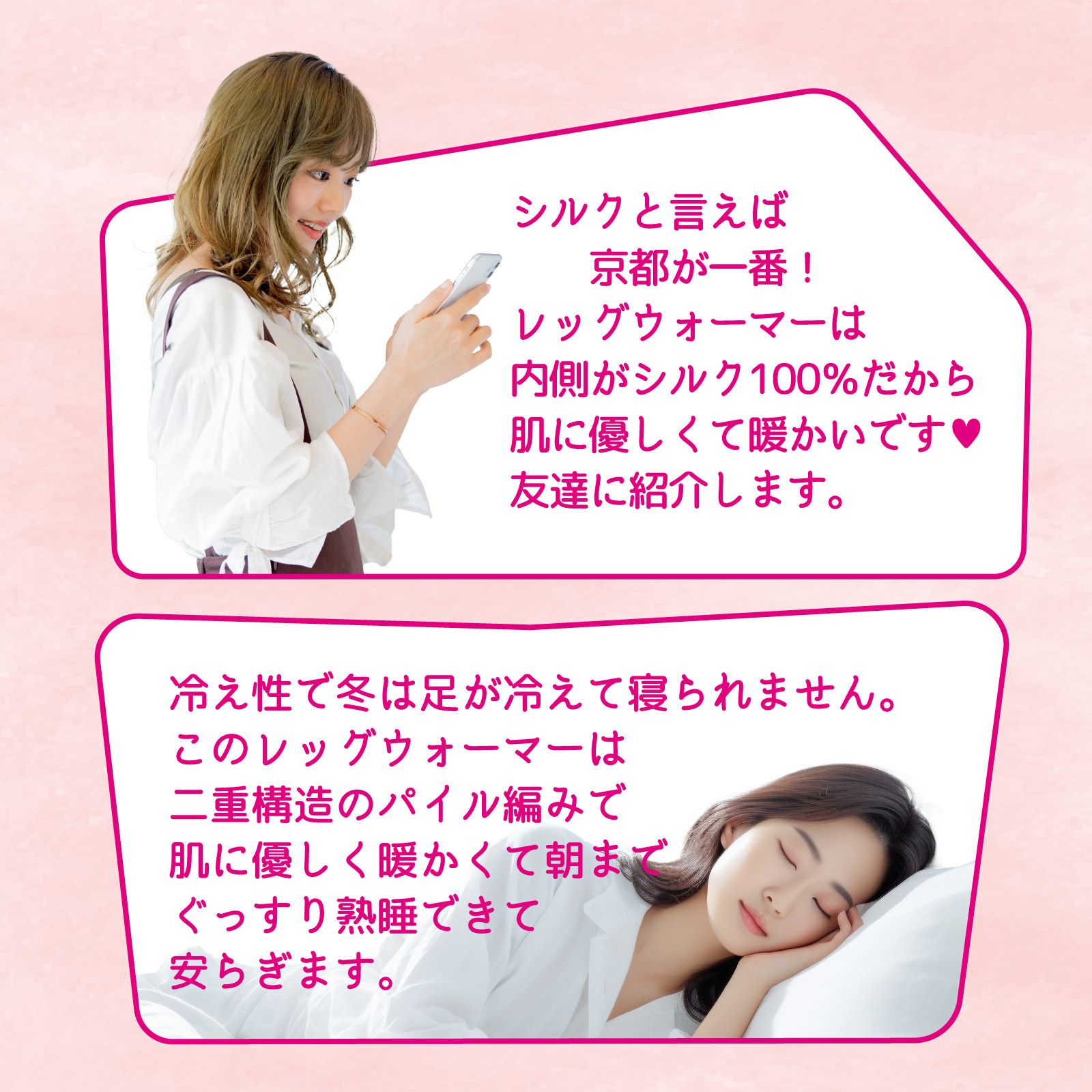 「絹の艶姫 レッグウォーマー」の素材