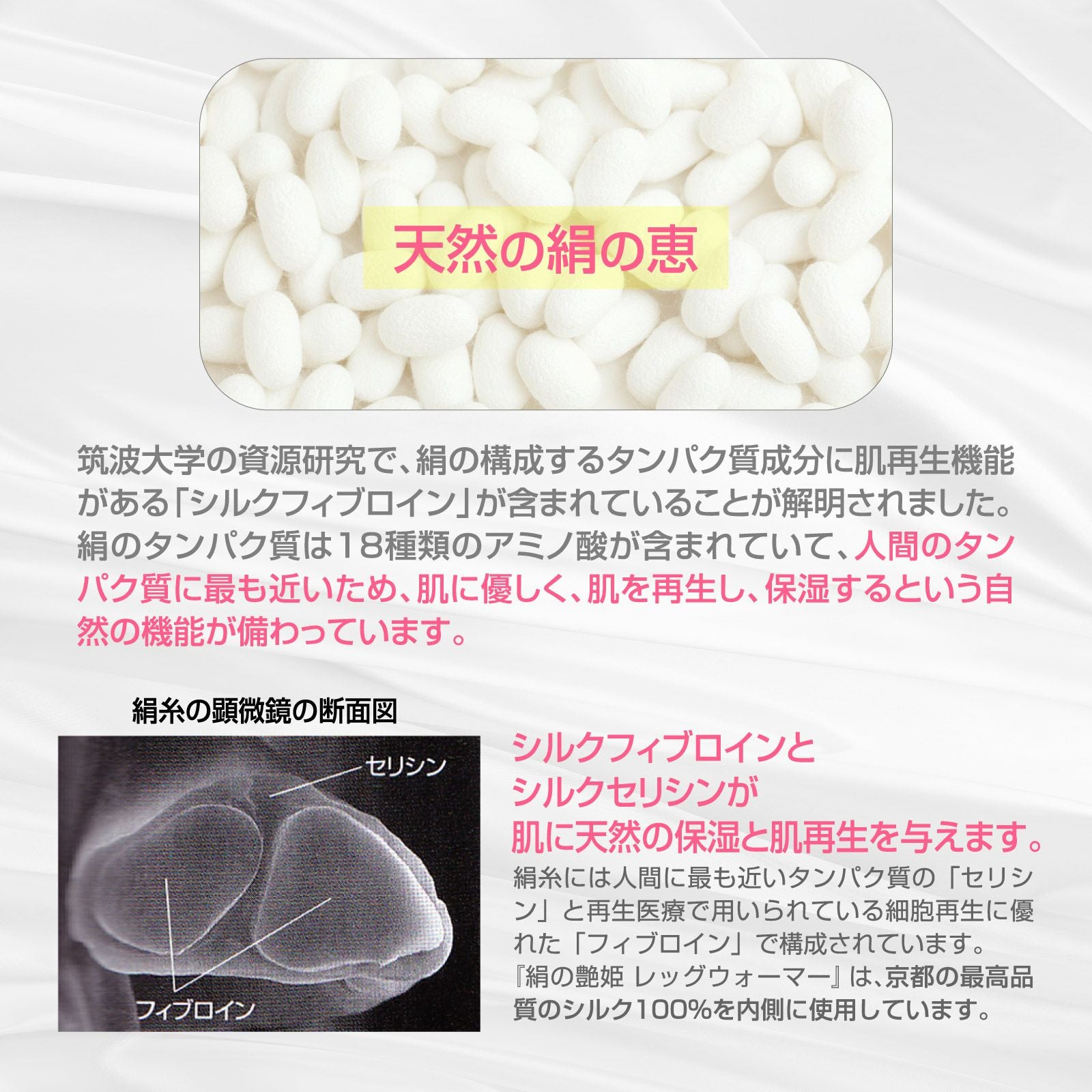 「絹の艶姫 レッグウォーマー」の素材
