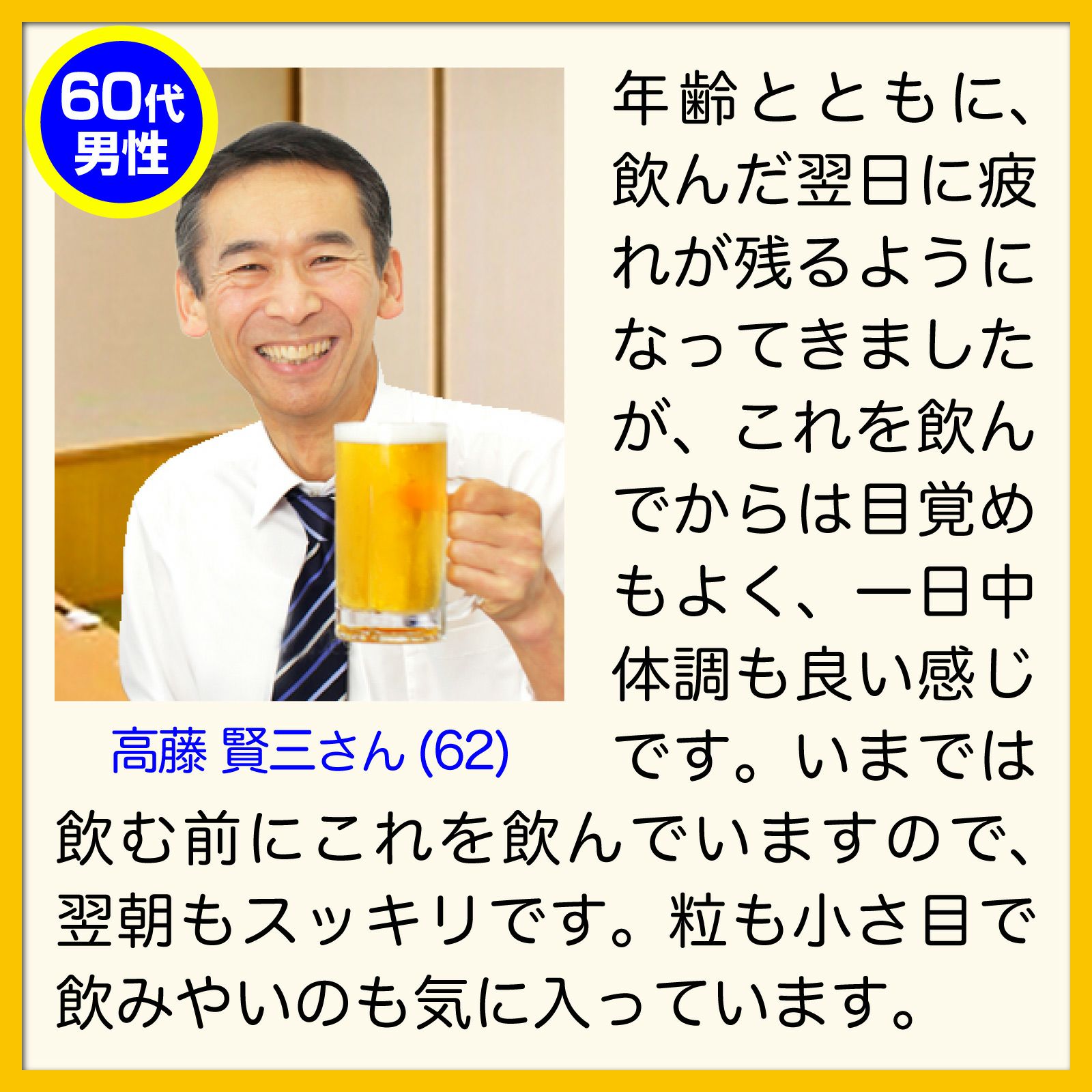 砂糖(国内製造)、粉糖(グラニュー糖、デキストリン)、牡蠣エキス(牡蠣抽出物、デキストリン)、ウコンエキス、でん粉、L-オルニチン塩酸塩、小麦フスマ、しじみエキス、水飴、食用油脂/貝Ca、増粘剤(アラビアガム)、グリセリン、タルク、着色料(カカオ、ベニコウジ)、シェラック、カルナウバロウ