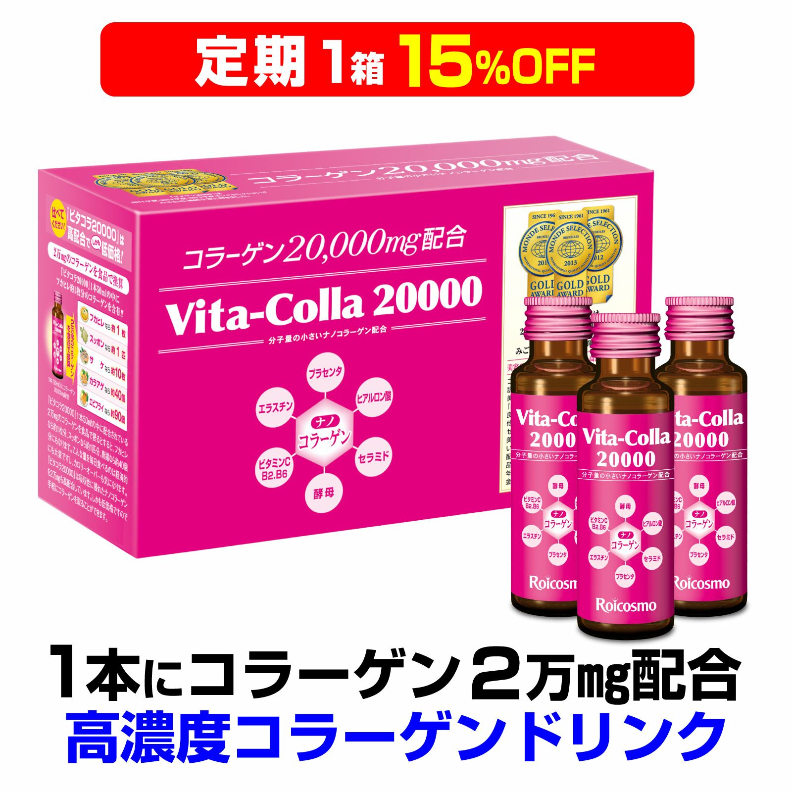 他の画像を見る 定期コース 定期販売 初回特別価格あり ROICOSMO 1本50mLにコラーゲン2万mg配合は業界No.1 高濃度 コラーゲンドリンク プラセンタ ヒアルロン酸も 高配合 高品質 美容ドリンク 【定期初回20%OFF】ビタコラ20000 (50mL) 10本入り×1箱 1回あたり ¥ 3,383 税込 モンドセレクション3年連続金賞受賞 楽天ランキング1位 Amazon's Choice 認定 詳細を見る お気に入りに保存