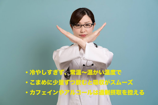 ・こまめに少量ずつ飲むと吸収がスムーズ