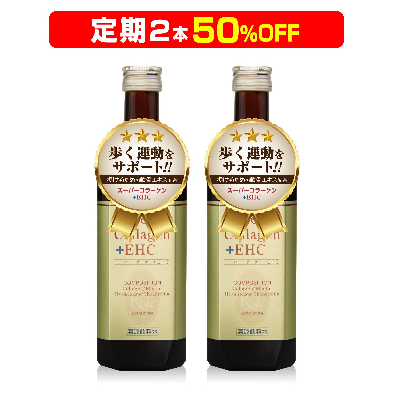 他の画像を見る 定期コース 送料無料 定期販売 歩けるために コラーゲン15万mg コンドロイチン6000mg ヒアルロン酸 エラスチン カルシウム 関節軟骨エキス 高配合 【定期 2本 50%OFF 】スーパーコラーゲン 500ml×2本 1回あたり ¥ 5,658 税込 詳細を見る お気に入りに保存