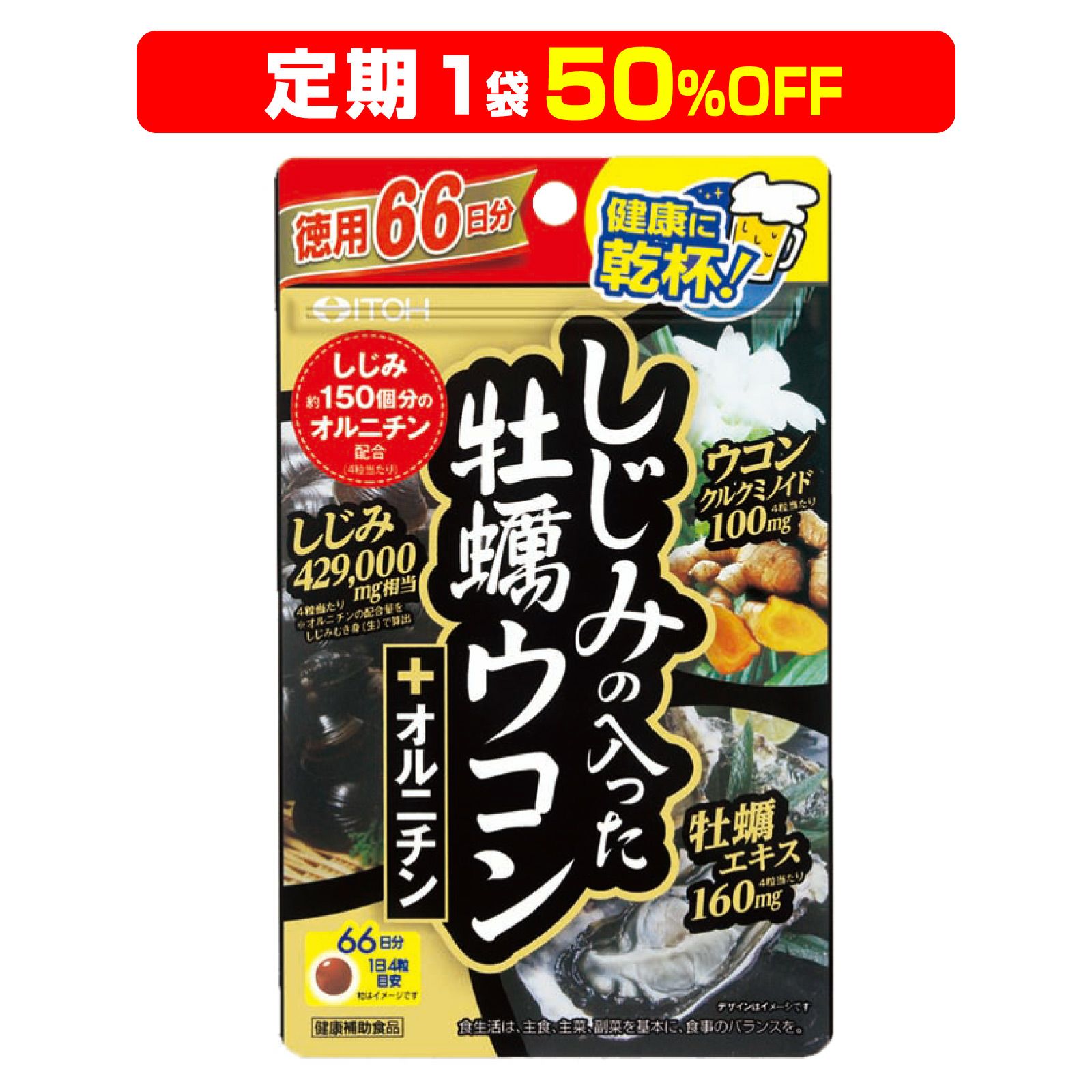他の画像を見る 定期コース DM便送料無料 定期販売 しじみ+牡蠣+ウコン+オルニチン 4大成分が一度に摂れる 二日酔いサプリ 最強の肝臓ケアサプリメント 【定期 1袋 50%OFF】しじみの入った牡蠣ウコン+オルニチン 120粒入×1袋 1回あたり ¥ 1,265 税込 詳細を見る お気に入りに保存